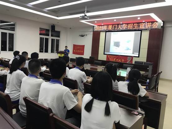 孙怀清教授进行了招生宣讲。他就厦门大学的光辉校史、一流师资、特色课程等方面做了详细介绍,并鼓励同学们志存高远,努力学习,以优异的成绩考上理想的大学,为社会贡献力量。