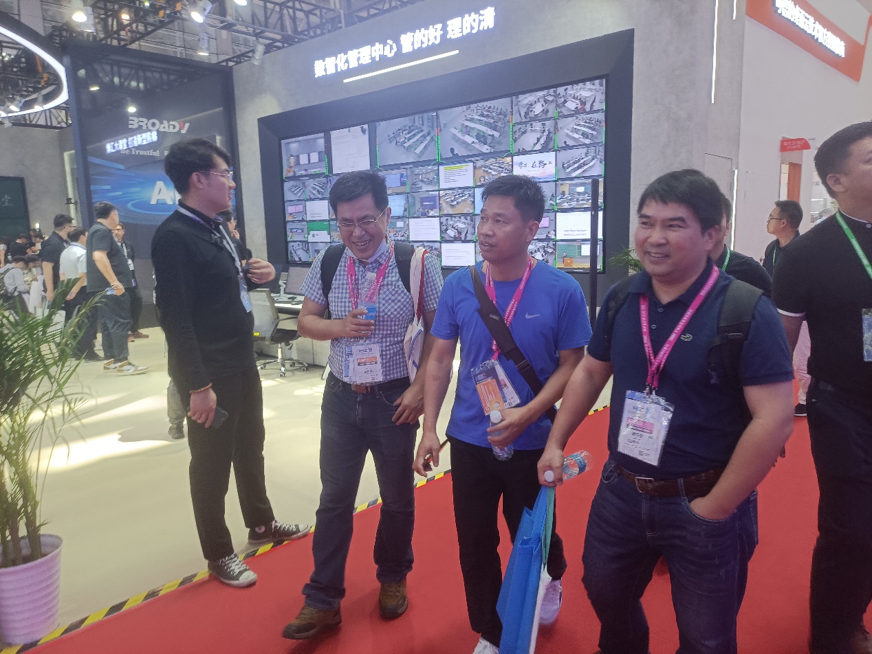 在高校仪器设备展览展示厅,我们一起参观了与教学相关的仪器设备并与相关厂家作了深入的交流。特别地,谢作生老师与华为、头歌的项目负责人一起交流讨论关于算力设备应用在教学方面的问题,提出了一些亟待解决的问题。双方在设备测试和今后应用部署等方面达成一致的意见。
