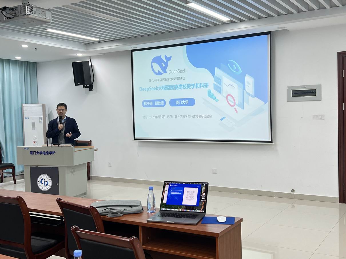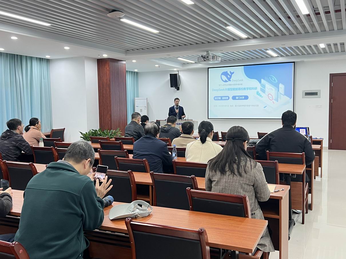 2025年3月5日上午9点30分至11点30 分,厦门大学信息学院实验教学中心组织了一场大模型知识集体学习活动。本次讲座由中心主任林子雨老师担任主讲教师,为实验教学中心的20余位教师带来了一场题为《DeepSeek大模型赋能高校教学和科研》的精彩主题讲座。