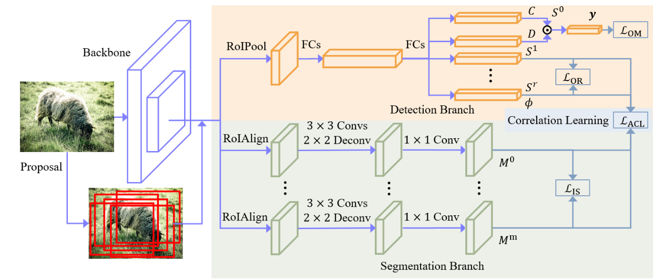 本文的第一作者是信息学院人工智能系2017级博士生沈云航,通讯作者是信息学院人工智能系纪荣嵘教授。本文从自顶而下和自底向上的实例分割方法启发,为弱监督实例分割任务提出一种统一平行检测分割的学习框架。特别地,检测模块和常见的弱监督目标检测一样,而分割模块采用自监督学习来学习类别无关的前景分割,然后再通过自训练来逐步获得特定类别的分割结果。最后,本文在多个数据集上验证了该算法的有效性。