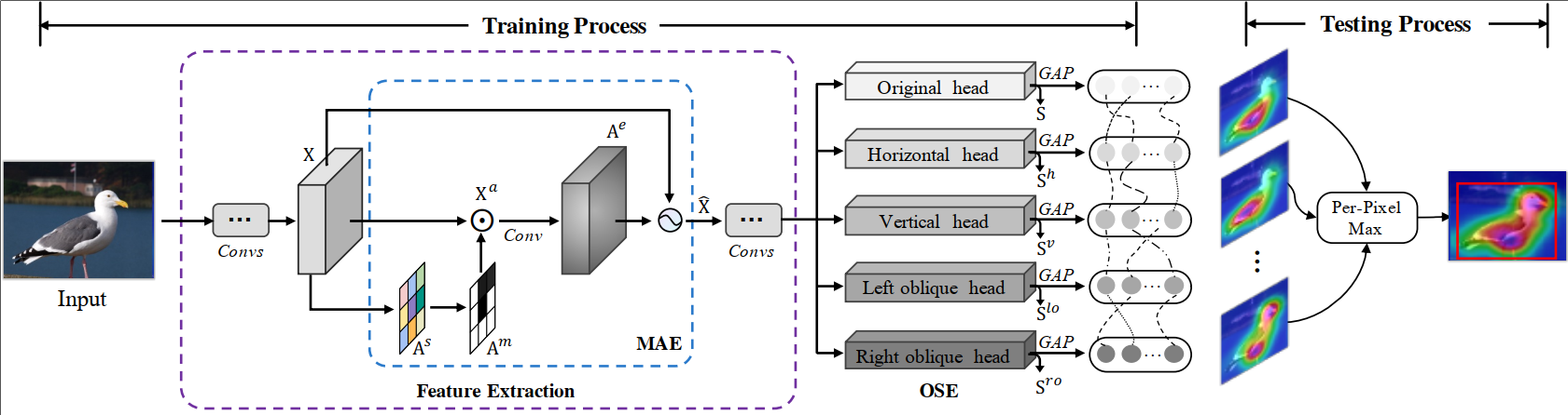 本文的第一作者是信息学院人工智能系2020级博士生陈志威,通信作者是信息学院计算机科学与技术系曹刘娟副教授。针对对弱监督目标定位任务中仅定位目标最显著性部分而忽略整体的问题,论文提出了一种端到端激励扩展网络,引导模型从不同的角度去激活目标非显著性定位特征以提高定位性能,同时不影响网络的分类性能。本方法平衡了弱监督目标定位任务中的定位和分类,定位和分类精度均得到了提升。论文在多个公开数据集上进行实验,充分证明了该方法的有效性和通用性。