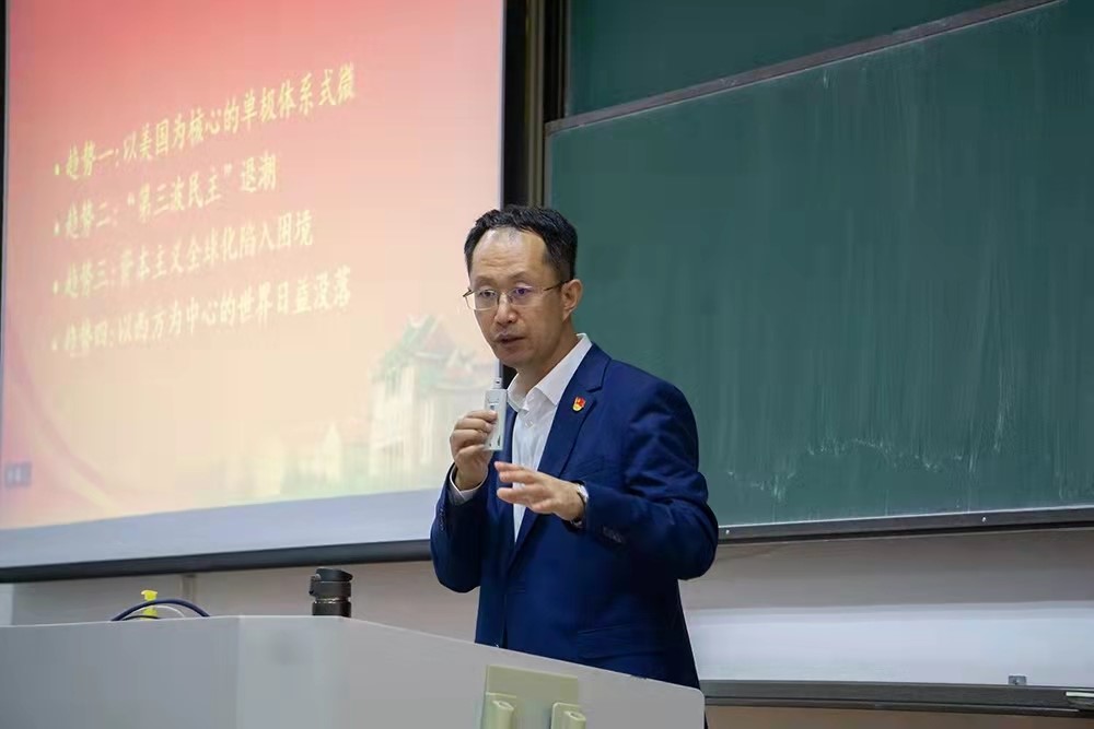 整场讲座张弛有度、详略得当,使同学们对十九届六中全会精神及当前我国面临的机遇与挑战有了更深切的认识和体会,增强了同学们的民族自尊心和自豪感,进一步加深了同学们对马克思主义中国化的认识。