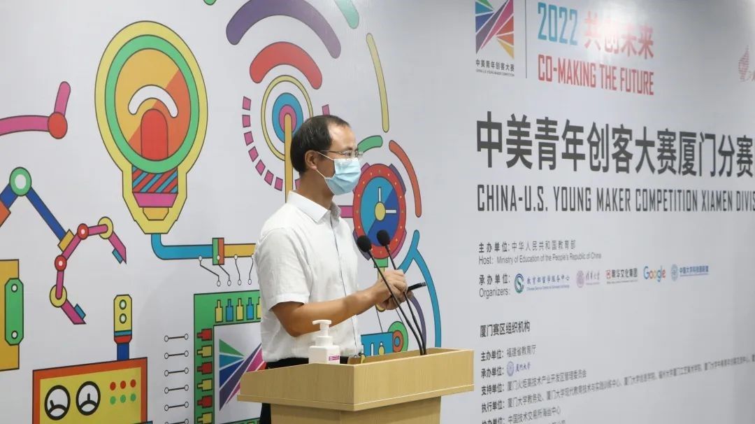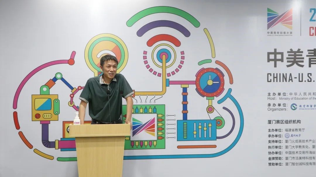 8日晚的开幕式上,厦门大学信息学院导航与位置服务技术国家地方联合工程研究中心主任石江宏教授致辞代表厦门大学与大赛组委会致辞,宣布了2022年中美青年创客大赛厦门分赛区决赛的正式开始。