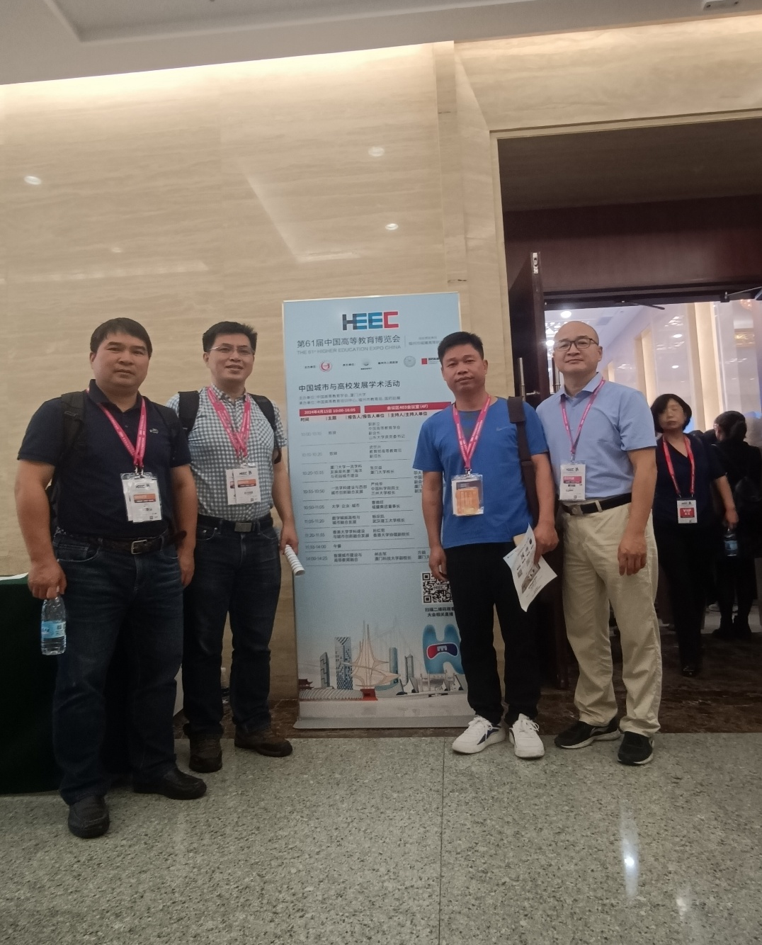 本届高博会以“职普融通、产教融合、科教融汇”为主题,包括“展览展示”“学术交流活动”两大部分。4月15日,我校承办了“中国城市与高校发展学术活动”。张宗益校长作了主题演讲。同时,受邀的部分高校领导和教授分别做了学术报告。我们四人一起参加了我校承办的学术活动并合影留念。
