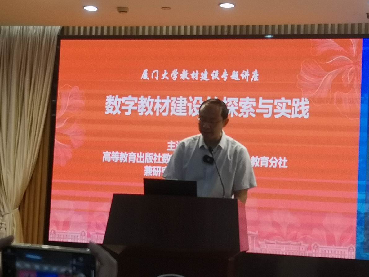 2024年6月26日(周三)下午3点到4点30分,厦门大学教材建设专题讲座在厦门大学本部科艺中心一楼报告厅举办,讲座由厦门大学教务处何海涛副处长主持,高等教育出版社数字教材出版中心本科教育分社时阳社长做了题为《数字教材建设的探索与实践》的专题报告,内容包括数字教材掀起新浪潮、数字教材带来新改变、数字教材建设新流程、数字教材赋能新未来。报告结束以后,在互动问答环节,中心林子雨老师提出了两个问题,第一,数字教材是否可以解决教材盗版问题,第二,纸质教材和数字教材如何选择,是否存在过渡期。时阳社长详细解答了林子雨老师的问题。