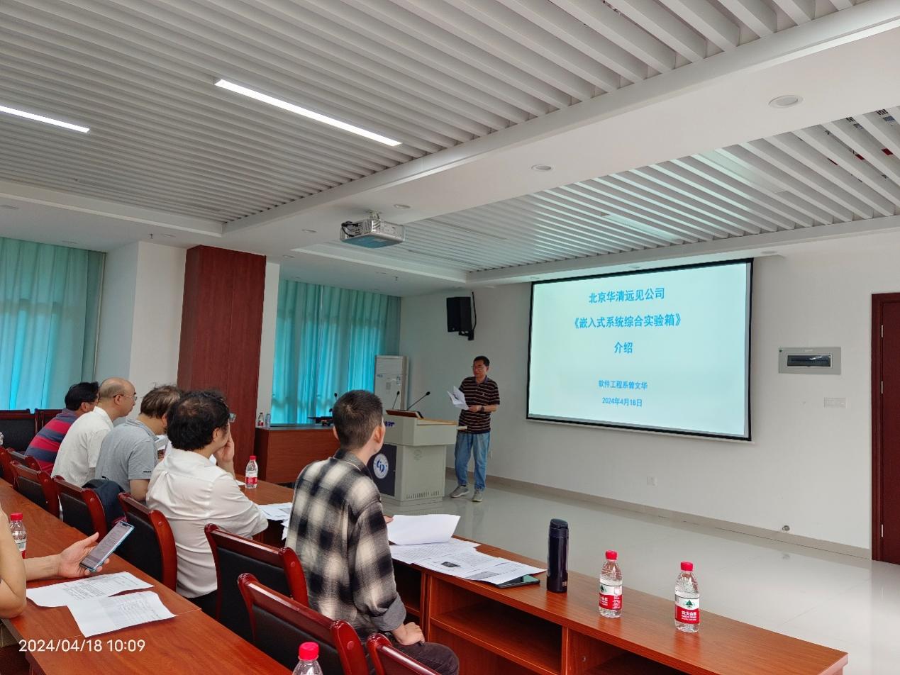 会议伊始,曾文华老师率先登台,就拟采购的嵌入式系统综合实验箱的可行性、必要性进行了全面阐述。通过生动的PPT展示,他详细介绍了实验箱的核心芯片、接口等关键技术参数,并展望了实验箱能够开设的实验课程及其对学生实践能力培养的重要作用。