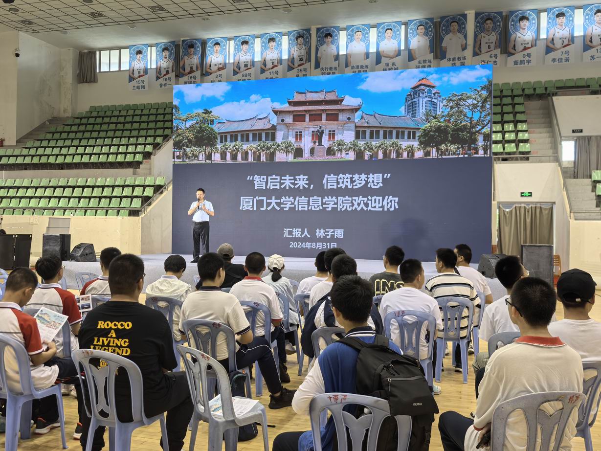 林子雨副教授作为信息学院的代表,上台做了主题为《智启未来,信筑梦想》的招生宣讲报告。报告中,他首先阐述了信息技术在当今社会的核心地位与广阔前景,强调了掌握信息技术对于个人成长与社会发展的重要性,激发了学生们对信息学科的浓厚兴趣。随后,他详细介绍了厦门大学信息学院在学科建设、师资力量、科研成果、国际交流等方面的显著优势,以及学院为学生提供的丰富实践机会和个性化发展平台,让在场的每一位听众都深切感受到了厦门大学信息学院作为培养未来科技精英摇篮的独特魅力。