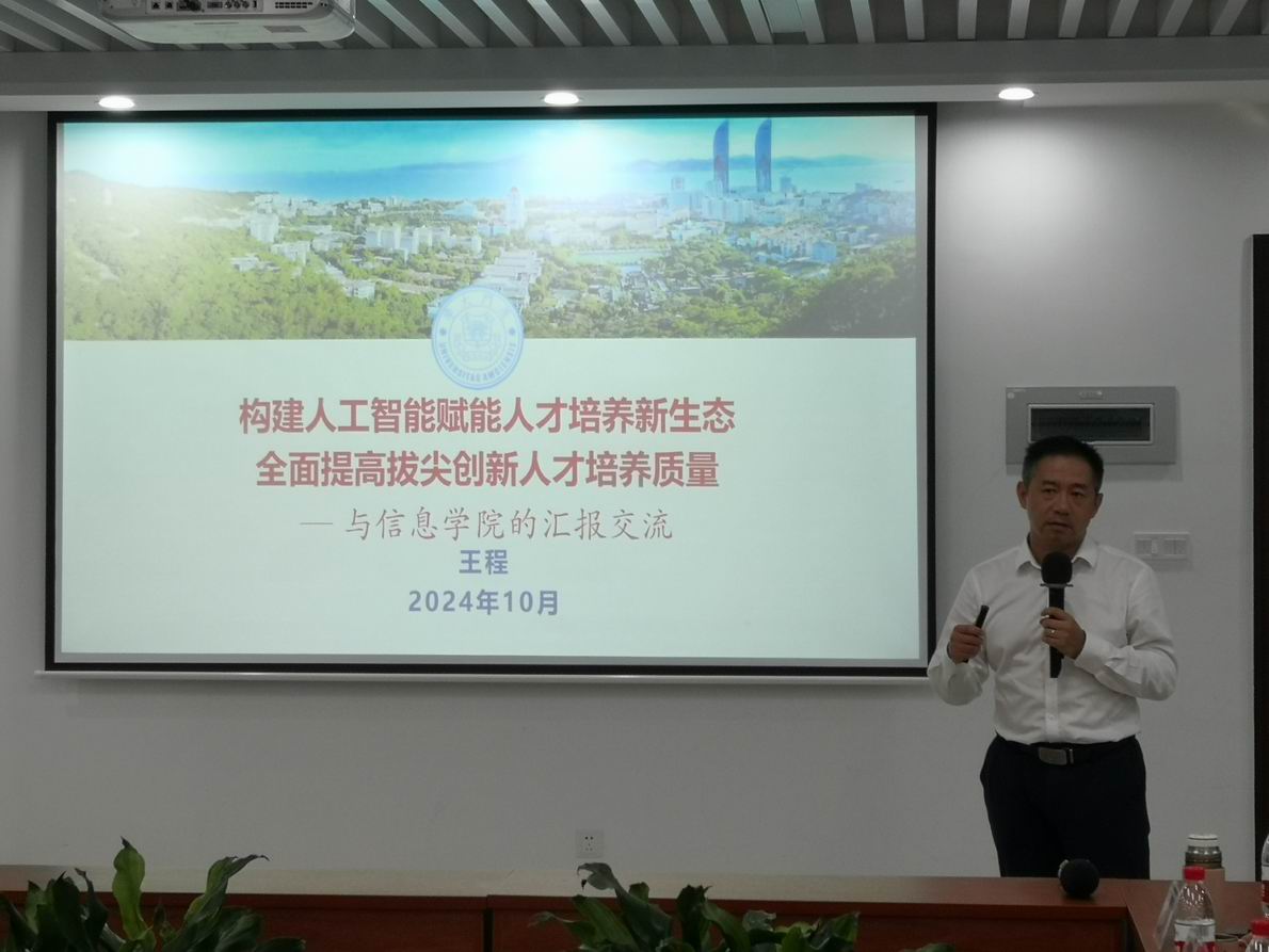 2024年10月11日下午,厦门大学信息学院在翔安校区西部片区1号楼108会议室成功举办了一场以“人工智能赋能教学”为主题的工作会议。本次会议由信息学院党委书记刘弢主持,全院教师代表齐聚一堂,共同探讨人工智能技术在教育教学中的应用与前景。
