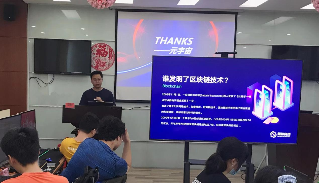 爱动漫国家基地导师、厦门网蜂科技有限公司CEO黄建荣及其核心技术团队成员吴少青、谢毅、李琳为同学们进行元宇宙知识科普,介绍了NFT项目、服务端技术、前端技术,让学生们了解完整的NFT平台各项的功能以及产品设计、UI设计、服务端开发,前端开发等一般软件研发流程。