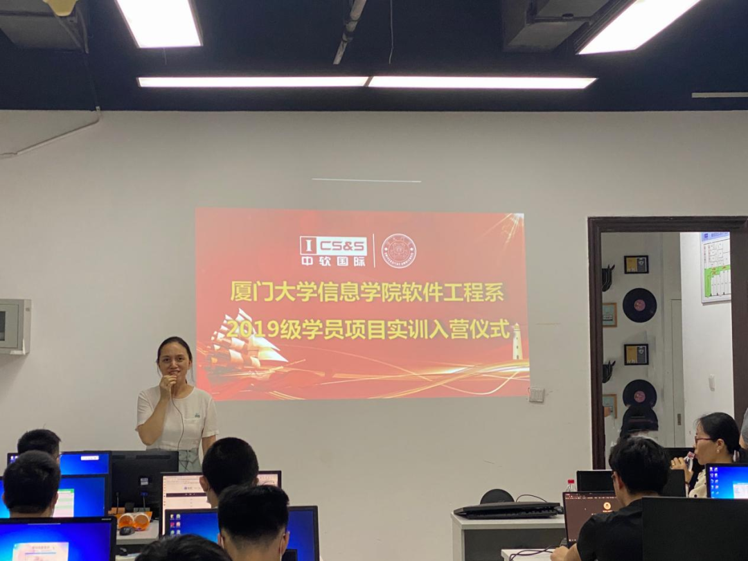 厦门大学信息学院软件工程系带队老师苏淑文发表讲话,希望同学们珍惜难得的实训机会,提升项目开发实操能力!