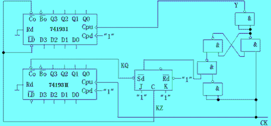 当74193I的D3D2D1D0=0101时,用双踪示波器观察Ck、CoII’、Y、CoI’、Q0、Q1、Q2、Q3的工作波形(观察17个Ck周期)。