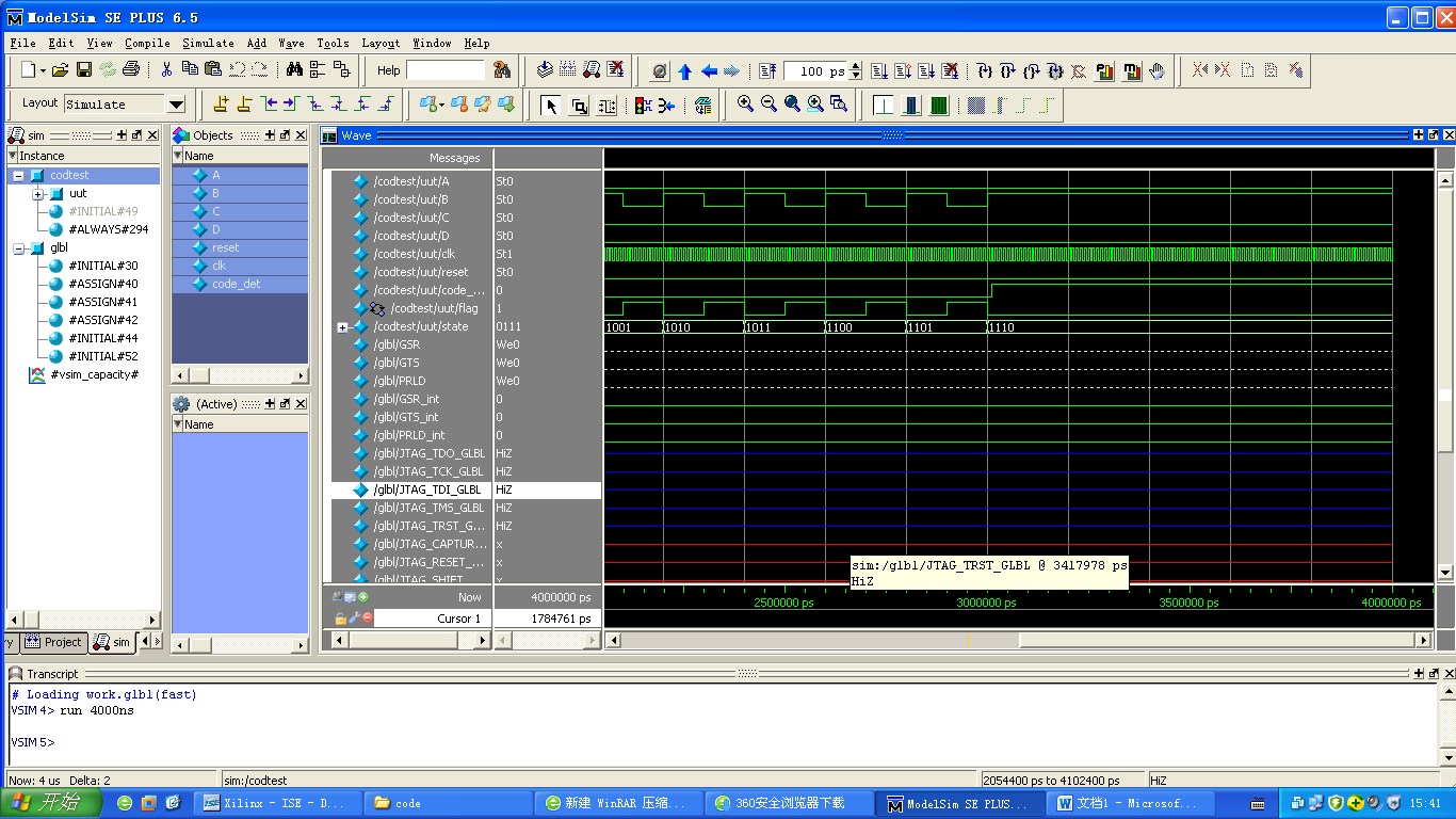 此外,为了方便在硬件上对状态的观察,将state和flag分别绑定了管脚,state与LED5~LED8相连,flag与LED4相连。